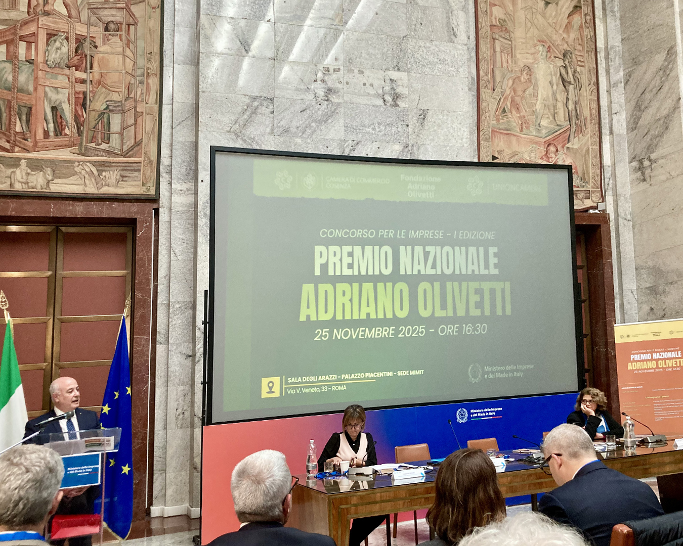 La cerimonia si è svolta nella prestigiosa Sala degli Arazzi del Ministero delle Imprese e del Made in Italy, un luogo simbolico per chi crede nell’innovazione come motore di crescita responsabile. Qui, davanti a istituzioni, imprese e realtà del terzo settore, il Premio Olivetti ha messo in luce le iniziative che traducono in pratica i principi di sostenibilità, comunità e sviluppo del Mezzogiorno. Valori che rappresentano da sempre la bussola del nostro lavoro.